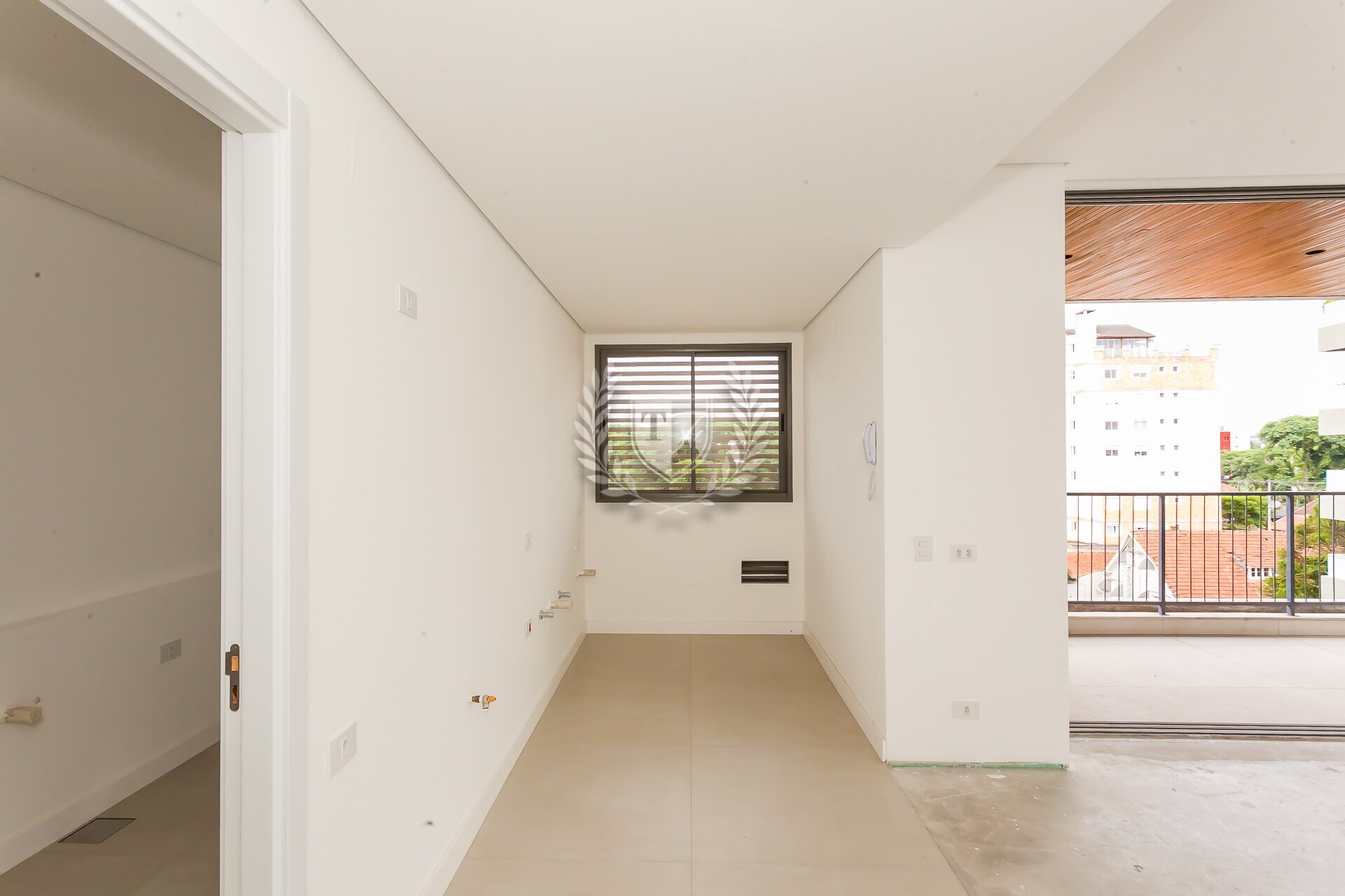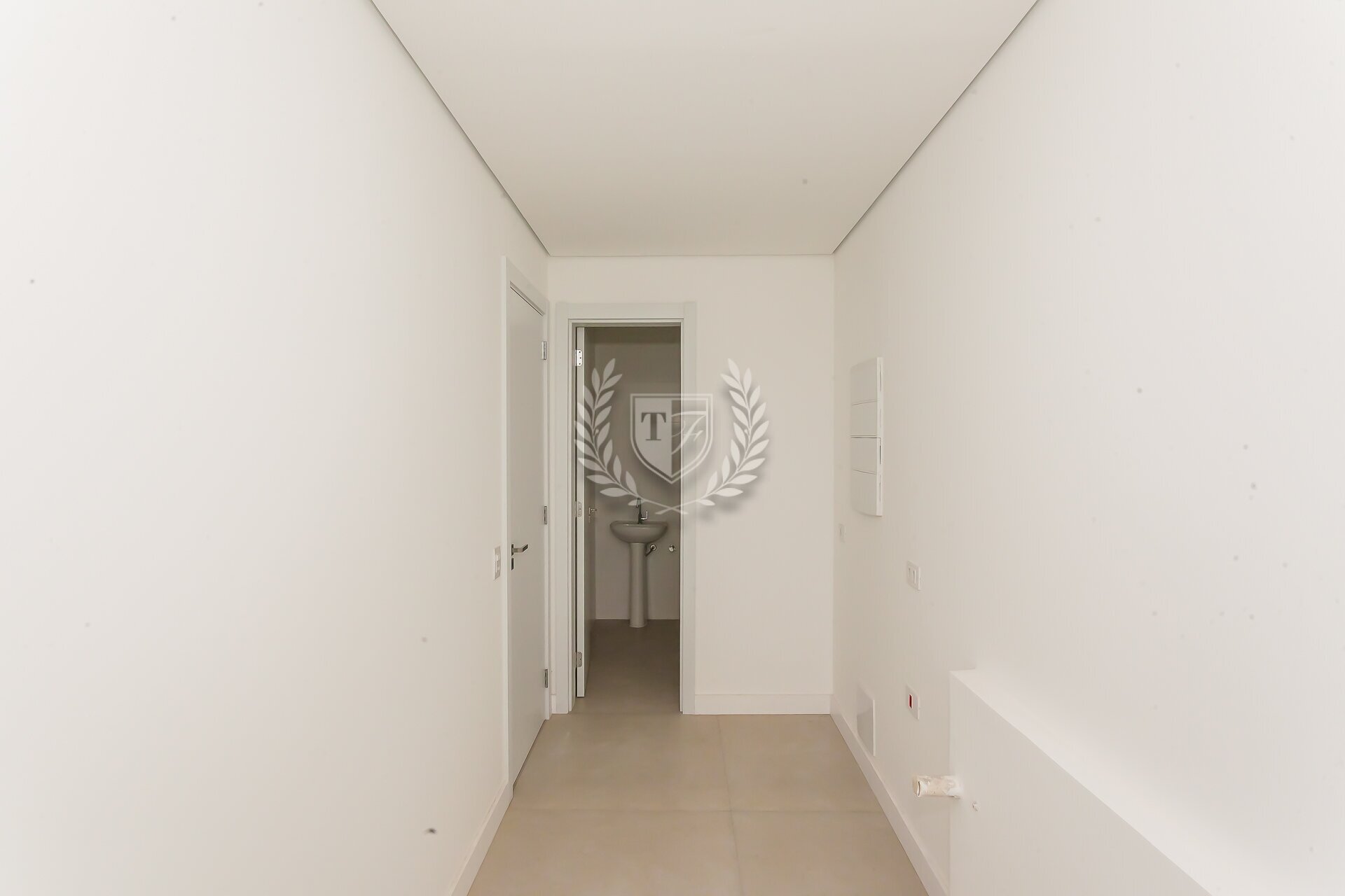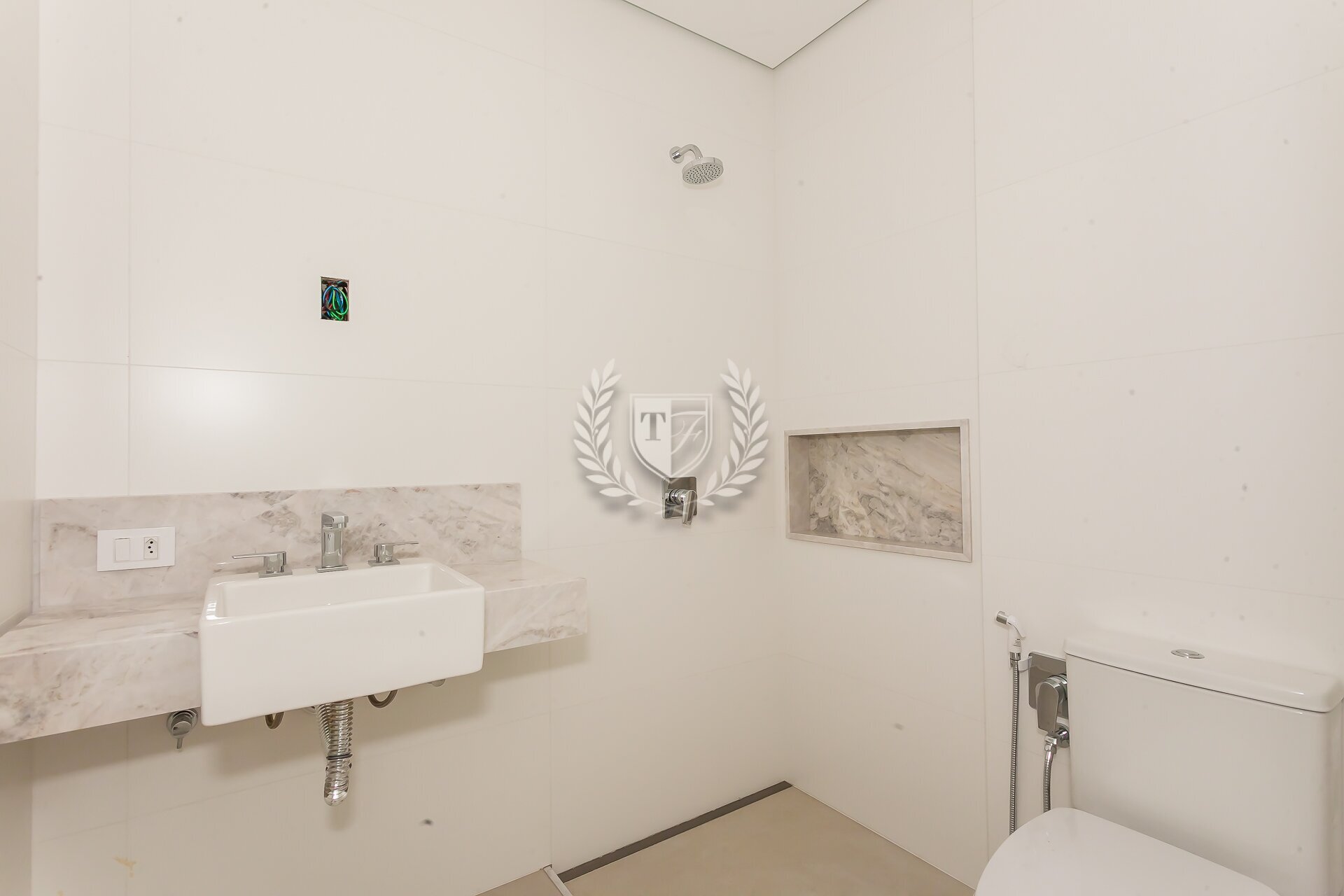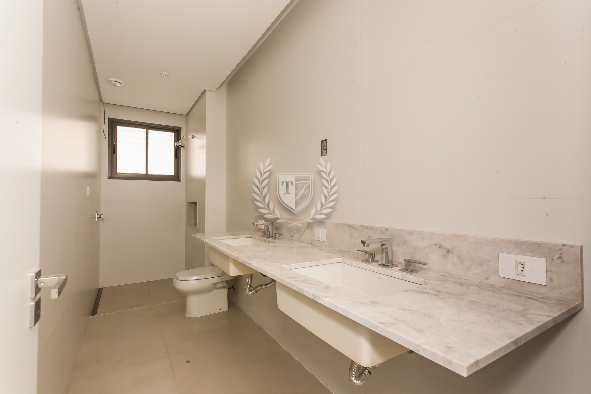 O apartamento conta ainda com banheiro de serviço completo, além de preparação para ar-condicionado e automação. Os acabamentos seguem um padrão elevado, com atenção aos detalhes.