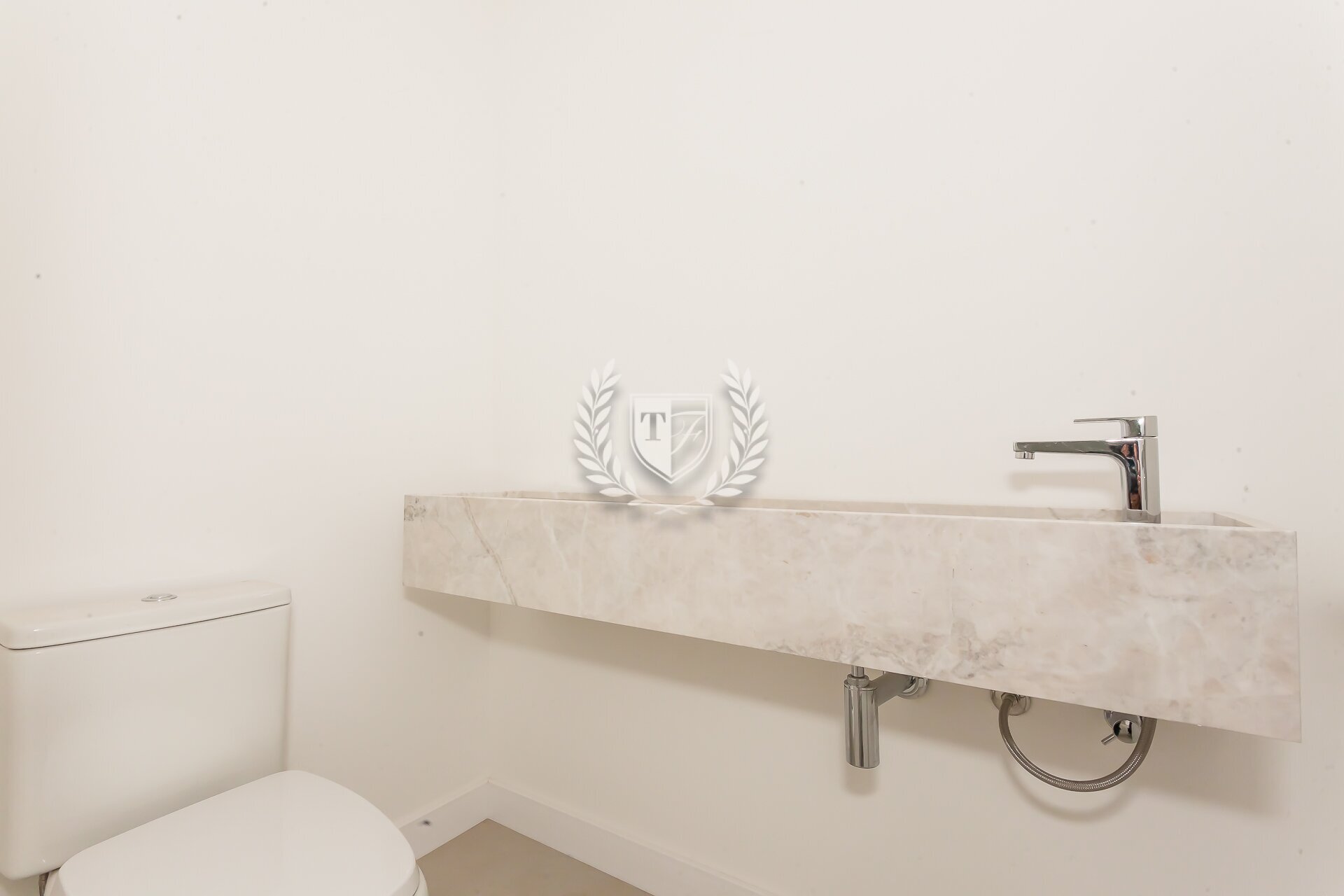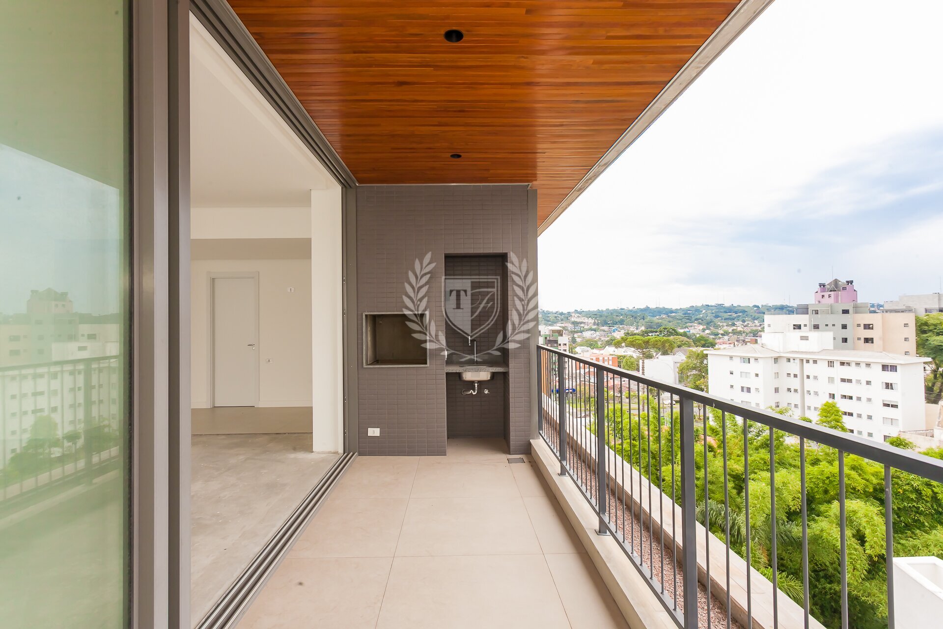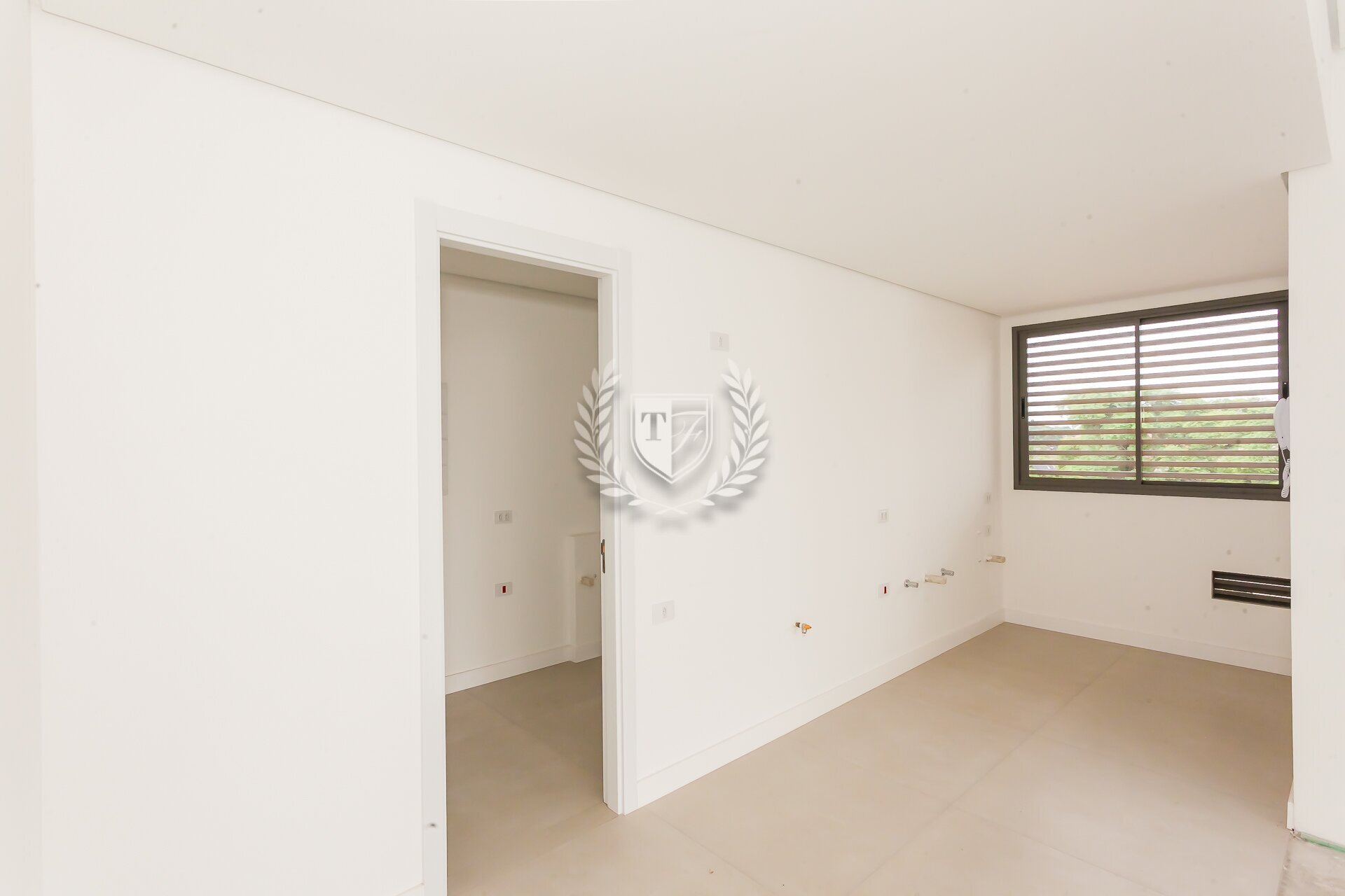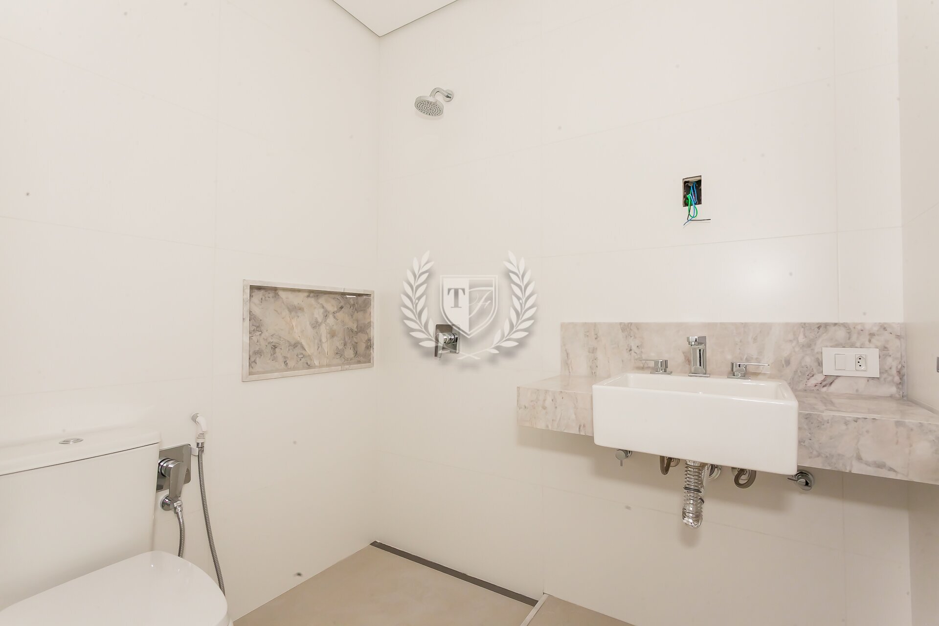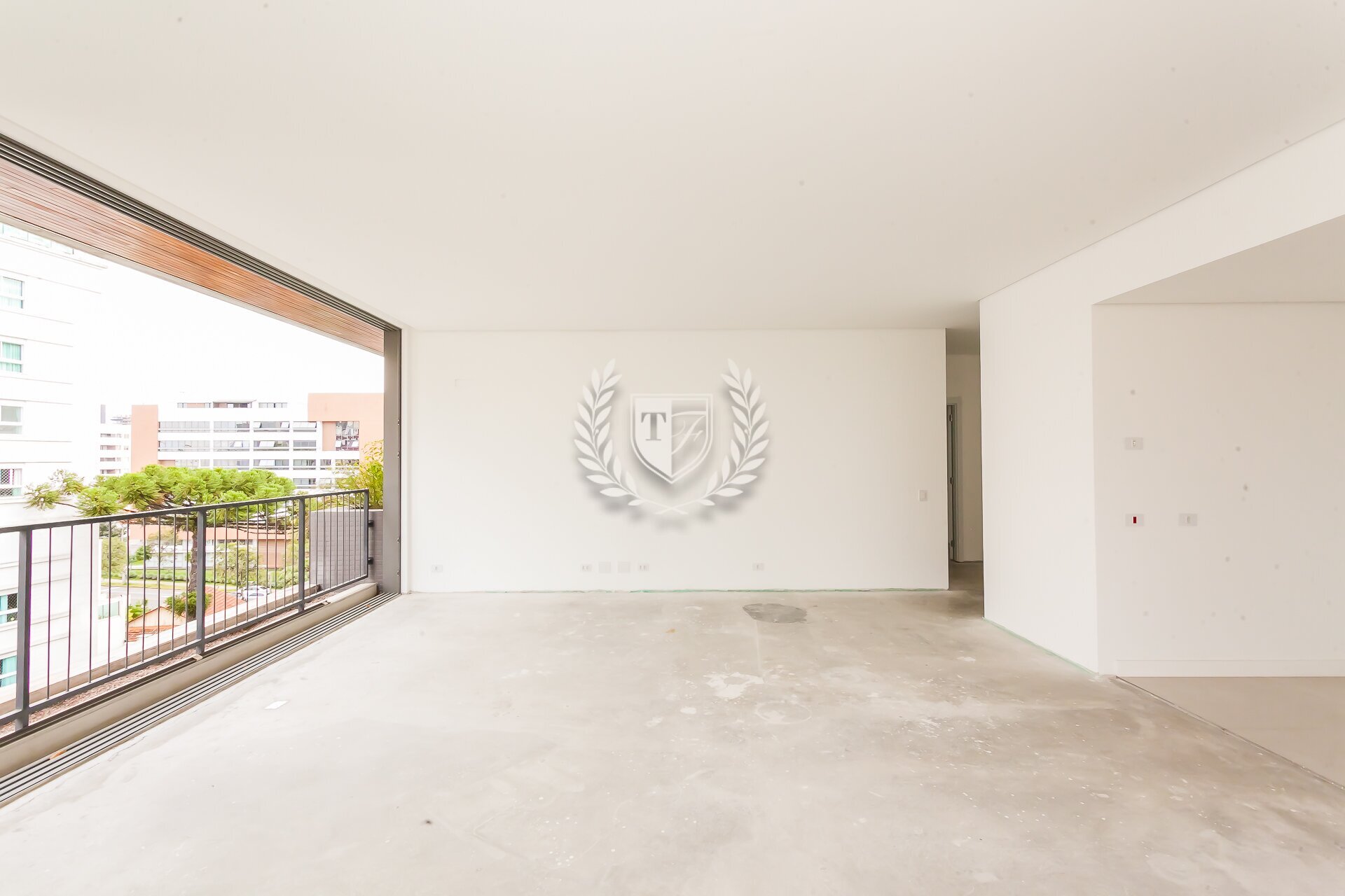 O apartamento conta ainda com banheiro de serviço completo, além de preparação para ar-condicionado e automação. Os acabamentos seguem um padrão elevado, com atenção aos detalhes.